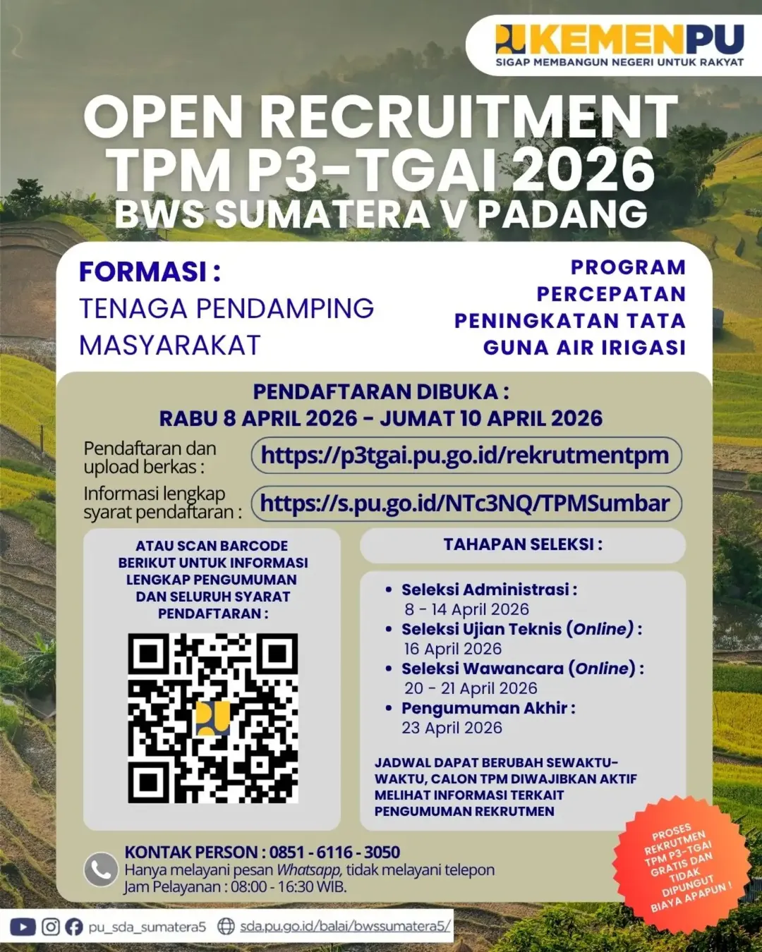 Pendaftaran Tenaga Pendamping Masyarakat (TPM) P3-TGAI Tahun Anggaran 2026 sudah dibuka. Untuk pendaftaran dibuka selama tiga hari dari 8 April – 10 April 2026, jangan lewatkan kesempatan, ya!